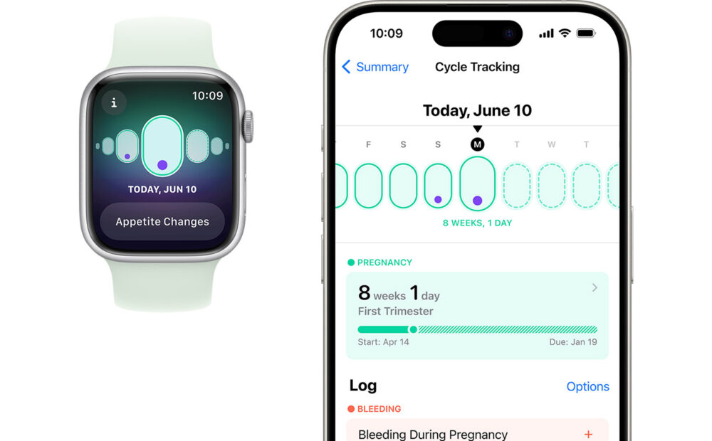 Lorsque vous ajoutez une grossesse dans l’application Santé sur iPhone ou iPad, l’application Suivi des cycles sur Apple Watch avec watchOS 11 affichera désormais votre âge gestationnel et suivra votre grossesse sur tous vos graphiques de santé.