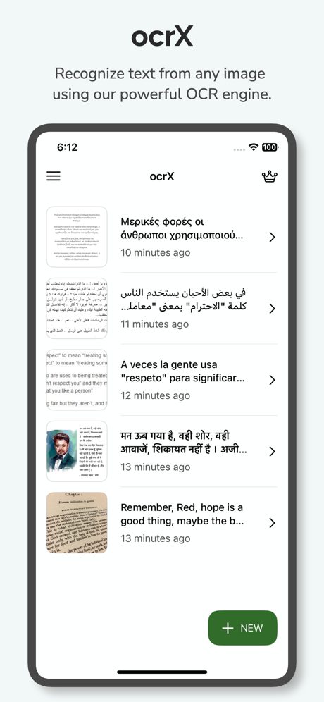 Numérisez et extrayez du texte à partir d’images avec une précision incroyable à l’aide d’ocrX. Il prend en charge l’extraction de texte à partir d’images dans plus de 100 langues. Reconnaissez le texte de n’importe quelle image à l’aide de notre puissant moteur OCR (reconnaissance optique de caractères). Prend en charge les textes manuscrits. Vous pouvez partager directement le texte extrait à partir de l’application. ocrX prend également en charge l’exportation du texte extrait sous forme de fichier texte ou PDF.