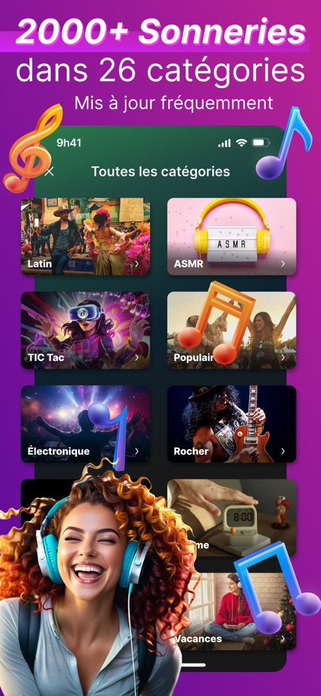 Lassé des sonneries par défaut que vous avez sur votre iPhone ? Sonneries pour iPhone est la meilleure application qui vous aidera à créer votre propre style ! Beaucoup de chansons avec une collection des sonneries les meilleures et les plus populaires pour iPhone. Plus de 10 000 sonneries populaires et nouvelles musiques dans notre application. Vous pouvez les définir comme sonnerie, message, alarme, notifications. Fatigué des sons d’alarme perçants ? Choisissez-en un qui vous fera sourire dès le matin. Personnalisez votre expérience de réveil avec notre créateur de sonneries ! Notre créateur de sonneries vous permet de créer n’importe quelle sonnerie que vous pouvez imaginer. Avec Garage Ringtones, vous obtenez plus qu’une simple chanson préférée ou le son d’une vidéo, vous pouvez vous créer une sonnerie unique à la volée.
