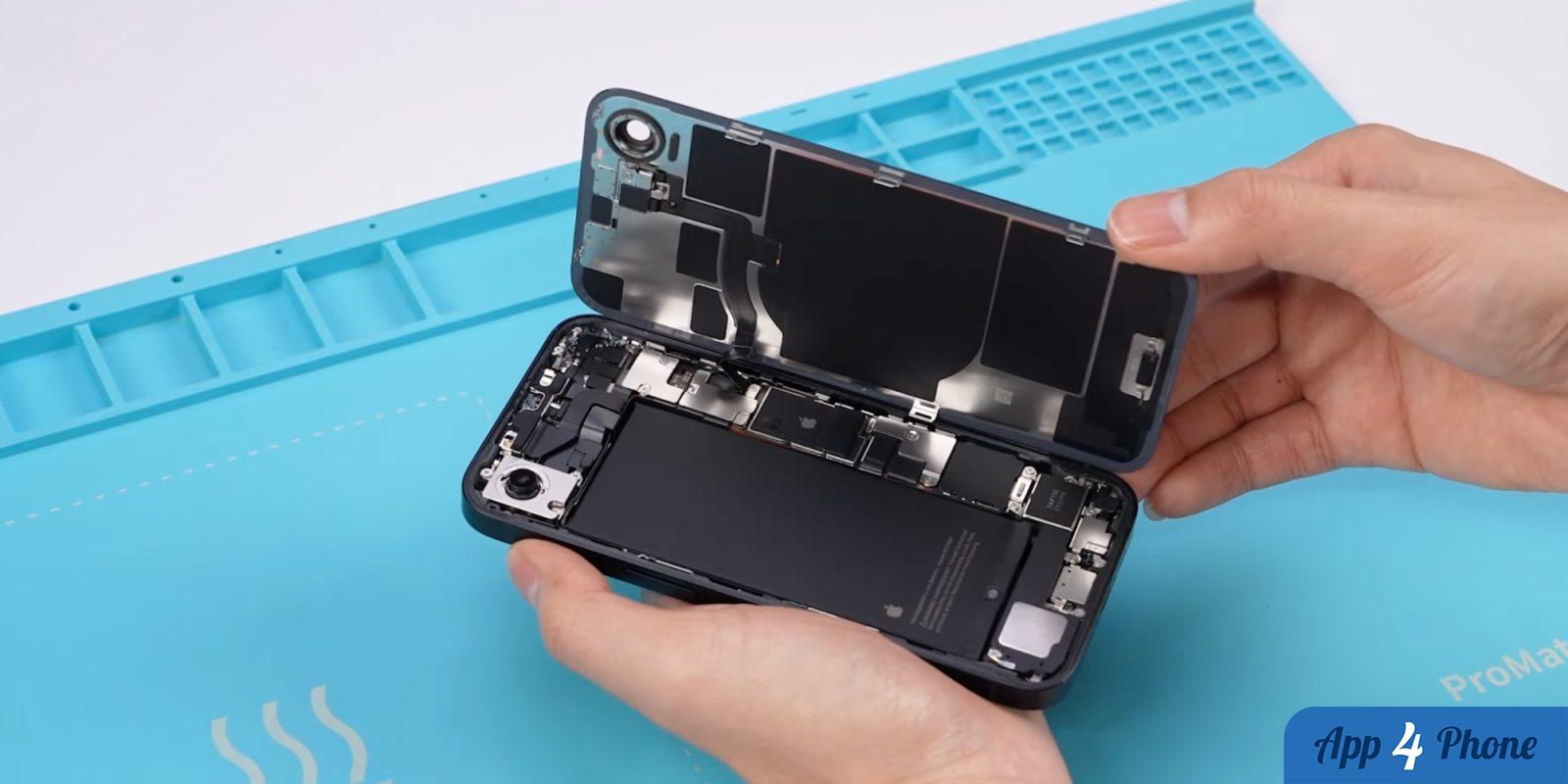 Démontage révélant l’intérieur de l’iPhone 16e