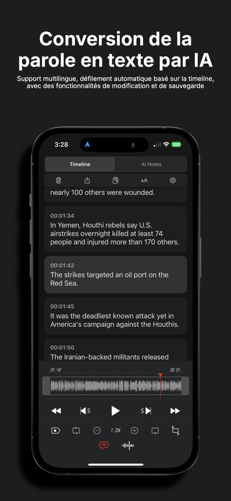 SoundNote propose des fonctionnalités de transcription alimentées par l’IA qui génèrent facilement des comptes rendus de réunions, des notes de cours, des résumés d’entretiens et des résumés de paragraphes. Il vous permet de capturer rapidement des informations importantes, de gagner du temps et d’améliorer l’efficacité du travail. Les fonctionnalités de transcription et de résumé alimentées par l’IA réduisent considérablement le temps de travail et offrent un environnement de travail plus intelligent et plus productif.
