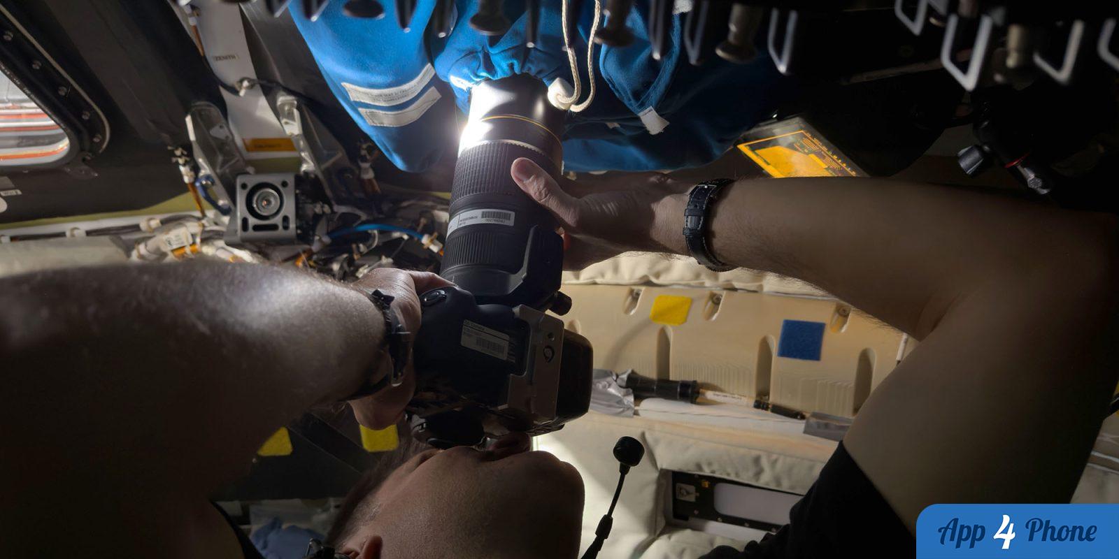Traditionnellement, les photographies prises dans l’espace se faisaient avec des appareils professionnels, comme des Nikon D5. Bien que les iPhones ne remplacent pas ces équipements de haut niveau, leurs dimensions compactes permettent des angles uniques, y compris des selfies astronautiques.
