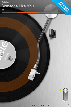 Pour sélectionner un album, il suffit de le toucher. Le Vinyle se lance alors automatiquement. Pour sélectionner une piste précise, vous devrez déplacer le bras sur votre disque. La partie est alors surlignée en marron. Le titre s’affiche dans la barre du haut (une autre barre vous indique d’ailleurs le nombre de morceaux sur le disque et celui actuellement joué: on veut du rétro, mais avec les avantages du neuf s’il-vous-plaît!).