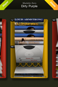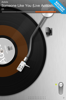 Dès l’ouverture, on retrouve un design épuré évoquant les tourne-disques. Le petit bouton coulissant en bas à droite vous permet de lever et d’abaisser le bras sur la platine. Pour sélectionner un album à jouer, vous devez vous sélectionner le bouton « Record Collection », en haut à droite.