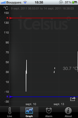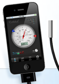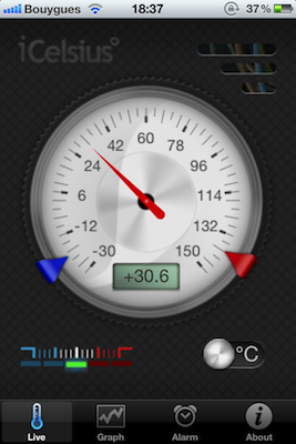 Il y a une app pour ça ! Maintenant vous pourrez aussi le dire pour mesurer la température de votre thé, de votre coca ou même de votre rôti. Vous pourrez mesurer tout ce que vous voudrez compris entre -30 et 150°. Cette app est couplée avec un accessoire, le iCelsius.