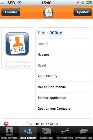 Ou alors, on vous donne une carte de visite, là encore, il faut tout entrer à la main, a moins d’avoir une application qui s’en charge… Mais pour ça, il faut un iPhone 4 ou 3GS, pour les modèles précédents c’est impossible. Là ou d’autres applications proposent de numériser les cartes de visite, Your Identity propose d’entrer les données à la main. À force on se rend compte que cette solution est bien plus viable que les autres, car le taux d’erreur et quasi inexistant.