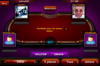 Quand vous cliquez sur « Jouer », l’application vous propose le choix entre le Hold’em et le Omaha (pour les non-initiés, ce sont deux pokers différents) ce qui est vraiment exceptionnel car, le plus répandu est le premier mais beaucoup de pros jouent au second bien qu’il soit moins répandu. Le seul absent reste le video poker, encore assez populaire de nos jours.