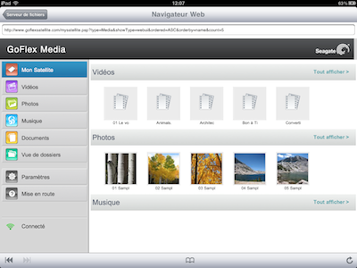 Je ne parlerais que de l’application GoFlex Media, universelle, qui permet l’accès aux données du GoFlex Satellite. Le logiciel Mac ou PC pour installer les données semble poser problème pour certains, alors que ça fonctionne pour d’autres. Pour moi cela a fonctionné, donc on ne va pas s’attarder sur ce point.