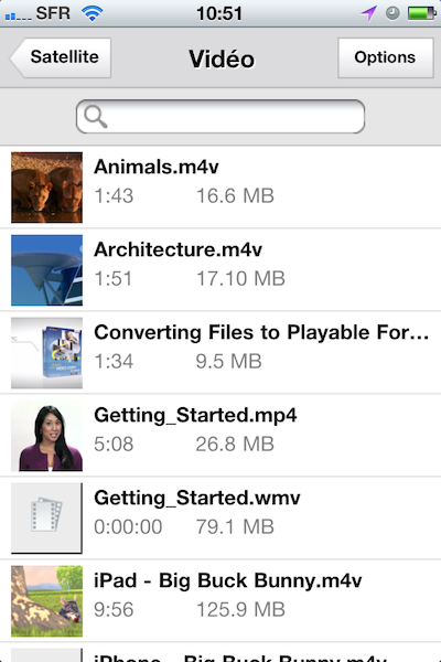 L’Ipad et l’Iphone ne savent lire les fichiers .avi, qu’ils faut donc transformer en .mp4 avant dépôt sur le goflex.
