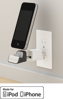 L’entreprise BlueLounge a créé ce MiniDock bien sympathique. Le MiniDock a l’avantage d’être tout petit, et donc de tenir facilement dans une poche. Vous le connectez au miniplug (non fourni) de votre iPhone, le branchez sur une prise, ajustez votre iBidule et voilà, il ne reste plus qu’à attendre que l’iMachin soit rechargé.