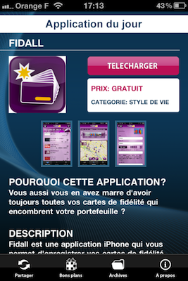 Pour finir, une partie est dédiée aux archives (anciennes applications du jour). Afin de ne rien râter en cas d’absence ou de non consultation de l’application. Le Push est activable afin de d’être prévenu en temps réel des applications du jour. Un partage du contenu via Facebook, Twitter et mail est bien sûr possible.