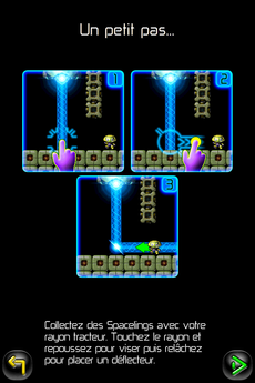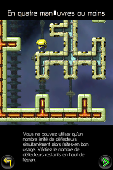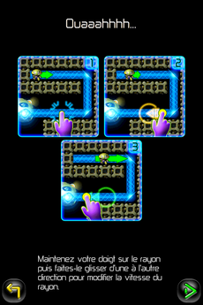 Pour les premiers niveaux, un tutoriel vous expliquera la marche à suivre. Rien de plus simple: vous n’avez qu’à tracer le faisceau avec votre doigt. Les déflecteurs sont cependant limités en nombre, il conviendra donc de les gérer au mieux. De plus, pour chaque niveau, vous aurez un temps de réalisation imparti. Eh oui, ces petits extraterrestres seront de plus en plus difficiles à secourir au fil des niveaux.