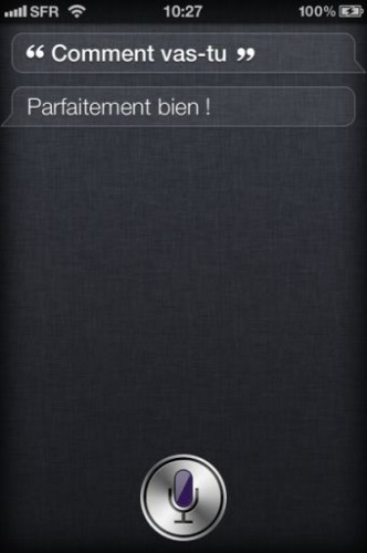 Sur 10 SMS de tests j ai envoye un seul message avec contenus espere (au 2nd essai)… Franchement un peu dég… Meteo marche mais le reste, y a encore bcp de boulot sur siri. Heureusement que je suis passe d un 32go à 64go car pour le reste (sauf qualité photo) je ne vois aucune différence entre mon iPhone 4 et mon 4s…donc pour ceux qui compte changer à taille égale je déconseille.