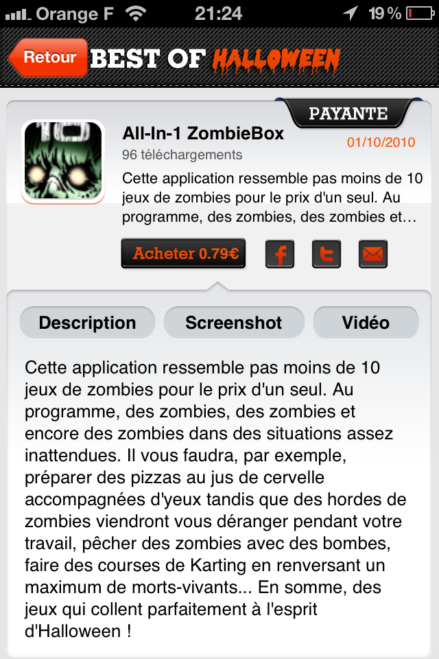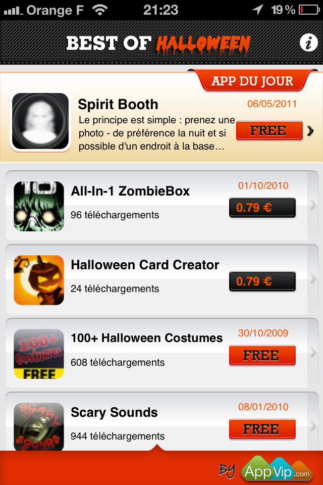 Dans une dizaine de jours ca sera la fête aux vampires, loups garou et autres morts vivants. Halloween, vous l’avez deviné évidemment. Pour fêter l’évènement, nous vous faisons découvrir aujourd’hui une application de la saga des Best of par AppVip, consacrée à la fête annuelle des fins d’octobre.