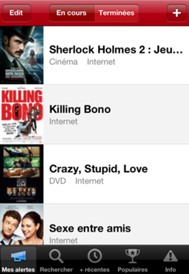 Vous vous agacez souvent car vous vous ne vous rappelez jamais de ce que vous aimeriez voir comme films, ayant oublié de le noter ? Et bien grâce à cette application, il n’y a plus de souci de cet ordre. Vous pouvez enregistrer les noms des films que vous avez repérés puis être alertés lors de leur sortie.