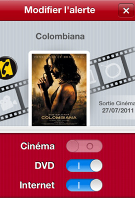 Trois alertes sont possibles selon le support choisi : pour la sortie du film au cinéma, en DVD ou bien sur Internet (attention, bien évidemment que sur les plateformes de téléchargement légal).
