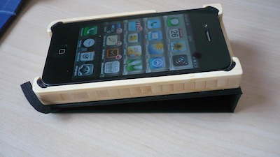 Surtout, ça a l’air bien pratique lorsqu’on veut poser l’iPhone de manière à lire ou regarder quelque chose et le matériau semble résistant, ce qui n’est pas vraiment le cas de ma coque actuelle, partant en lambeaux …