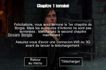 Petit bémol: à chaque fin de chapitre, vous devrez télécharger la suite via wifi ou 3G. Une petite perte de temps assez désagréable je trouve, mais qui permet également de ne pas surcharger son iPhone pour rien.
