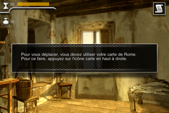 Vous devez donc mener vos enquêtes dans différents endroits de Rome, que vous débloquerez au fur et à mesure. Pour vous déplacer dans les différents endroits disponibles, il vous faudra accéder à la carte grâce au bouton le plus à gauche dans la partie supérieure droite de l’écran.