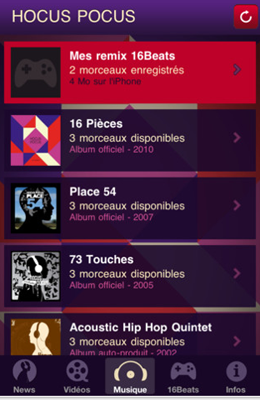 Hocus Pocus, groupe de Hip Hop – Jazz – Soul Nantais, lance une application gratuite à l’occasion de la sortie de leur troisième album, « 16 Pièces », sorti en 2010 chez Motown France.