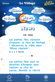 Le village des rêveurs vous tient quant à lui au courant de toutes les news de Let’s Dream, et vous permet d’accéder au podium (les rêveurs les plus actifs et les plus populaires), de voir les idoles (ceux qui ont le plus de fans), les plus grands fans, ou encore les « petits derniers ».