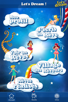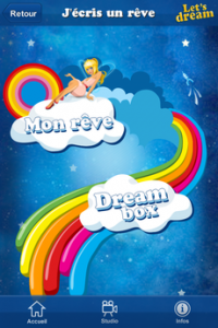 Une fois ceci fait, vous accédez au menu. « Mon Profil » vous permet de modifier vos informations, consulter vos stats, gérer vos amis, voir les rêves que vous aimez, relire vos propres rêves ou encore d’accéder à vos messages.