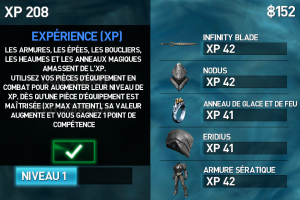 Le principe reste cependant plus ou moins le même: vous devrez visiter le château où est enfermé le forgeron en boucle, tout en conservant votre inventaire et votre niveau. Cependant, le château est bien plus grand que dans la première mouture, et l’on découvrira pas mal de possibilités de visite au fur et à mesure de son avancement. Infinity Blade est une sorte de mini-RPG où vous devez faire monter en niveau votre héros, augmenter ses capacités et surtout bien l’équiper.