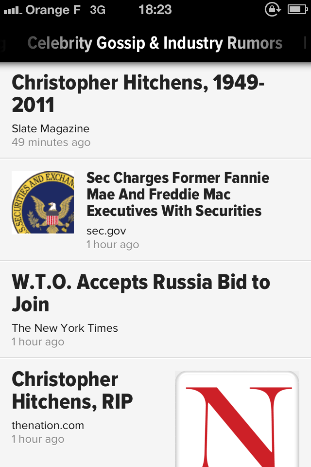 Pour conclure, Zite propose une expérience sympa, mais pas révolutionnaire. Premier aspect qui en rebutera plus d’un: l’application n’est disponible qu’en anglais, peu pratique pour ceux qui ne maîtrisent pas vraiment cette langue même celle-ci devient la norme. Le contenu personnalisé s’avère pratique puisque plus le temps passe, plus Zite vous propose des articles adaptés à vos envies et proches de votre profil. Cependant, on regrette l’absence d’une mise en page propre à l’application, qui finalement ne fait que reprendre celle de ses sources. Toutefois, pour une application gratuite, Zite fait très bien son travail et satisfera certainement les adeptes de la presse anglo-saxonne. Et vous, quelle application d’actualité utilisez-vous sur votre iDevice?