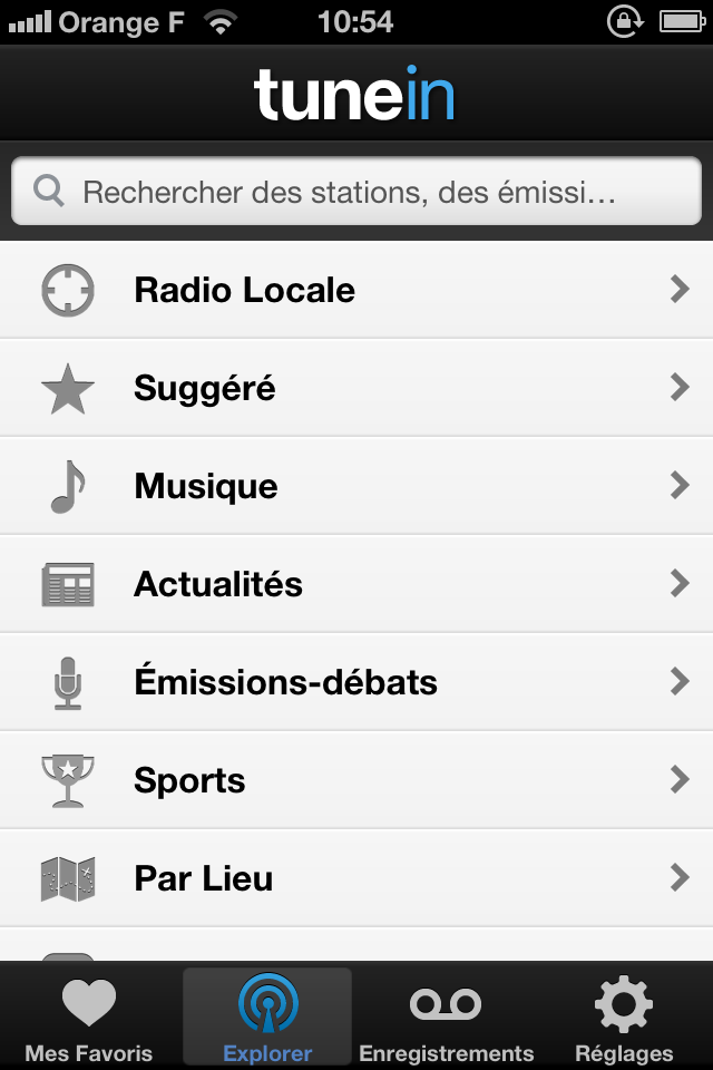A vous de retrouver vos radios préférées! C’est là qu’intervient l’onglet « Explorer » affiché à l’écran par défaut à la première ouverture de l’application. Vous pouvez utiliser les catégories ou la recherche pour retrouver des stations précises, mais aussi les utiliser pour découvrir de nouvelles radios!