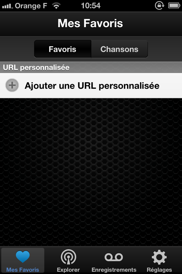 L’onglet « Mes Favoris » regroupera les stations que vous avez ajoutées comme telles. Il est également possible d’ajouter une URL manuellement: bref, tout le monde s’y retrouvera en personnalisant au maximum l’application. L’onglet « Enregistrements » conserve quant à lui les émissions ou chansons que vous avez enregistré en mode Lecture.