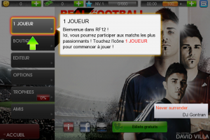 En somme, Real Football 2012, c’est un jeu plus que réaliste qui peut même reprendre de vrais matchs pour y jouer, avec des graphismes réellement réussis, un gameplay efficace, et une personnalisation infinie avec l’éditeur et les achats boutique. Je trouve le côté « quiz » sympa également, car l’application distille à chaque chargement des citations de joueurs ou des infos sur le nombre de coupes gagnées par tel pays etc., de quoi en savoir toujours plus sur le football, surtout lorsque c’est une passion. Bref, le jeu est gratuit en ce moment: profitez-en!