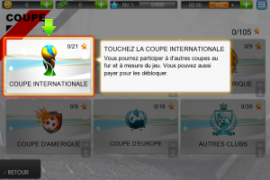 Enfin, chaque match vous rapporte un certain nombre « d’argent » que vous pourrez ensuite utiliser dans la boutique pour acheter de nouveaux ballons, de nouveaux stades, de nouveaux joueurs, etc.