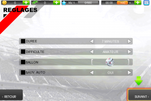Avant chaque match, différents réglages vous sont proposés, vous permettant de faire varier la durée de celui-ci, de sélectionner un mode de difficulté, etc.