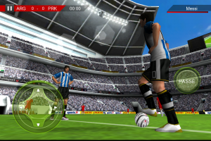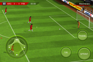 Le jeu peut enfin commencer. Là encore, les graphismes ont vraiment été travaillés. Les joueurs sont très réalistes, on retrouve l’ambiance du stade, bref: tout pour se croire dans un vrai match. Il faut dire que le jeu a tout de même nécessité plus de 700 captures de mouvements pour rendre les joueurs plus vrais que nature. Le gameplay est vraiment sympa, avec un stick virtuel en bas à gauche et des boutons dédiés aux actions sur la droite. Simple mais efficace.