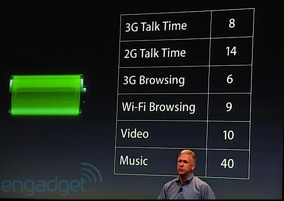 Moi iPhone 4, la batterie dure toute la journée en utilisation intensive (internet, musique, apps…) et jusqu’à 3 jours en utilisation normale (quelques appels, SMS…). Donc très content de la batterie!