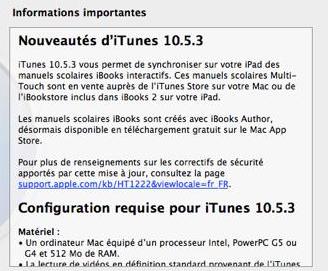Apple vient de sortir une mise à jour d’iTunes en 10.5.3 PC et Mac.