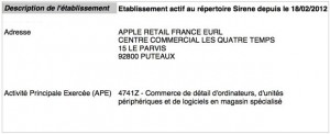 App4Phone vous tient régulièrement au courant sur les ouvertures des Apple Store dans la France entière, et après celui d’Aix-en-Provence (à lire ici), c’est celui de la Défense (92) qui va bientôt ouvrir ses portes (à lire il y a quelques mois ici). La description de la boutique dans le registre adéquate a même été réalisée, preuve de l’ouverture prochaine (pas de date officielle pour l’instant) de la boutique.