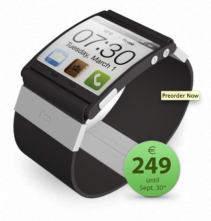 Cependant, si vous désirez vous acheter une montre qui se connecte à votre iPhone, iPad, il en existe déjà une : i’m Watch (présentée à il y a plusieurs mois sur App4Phone, à lire ici).