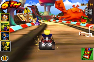 Le jeu sur iPhone / iPod Touch ne reprend pas le gameplay originel du jeu solo, mais bien une adaptation type Mario Kart. C’est en effet sur le bitume (et autres…) que vous vous retrouverez, les fesses posées sur le siège de votre karting de fortune.