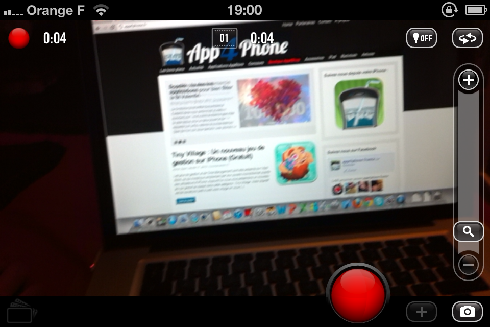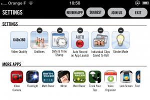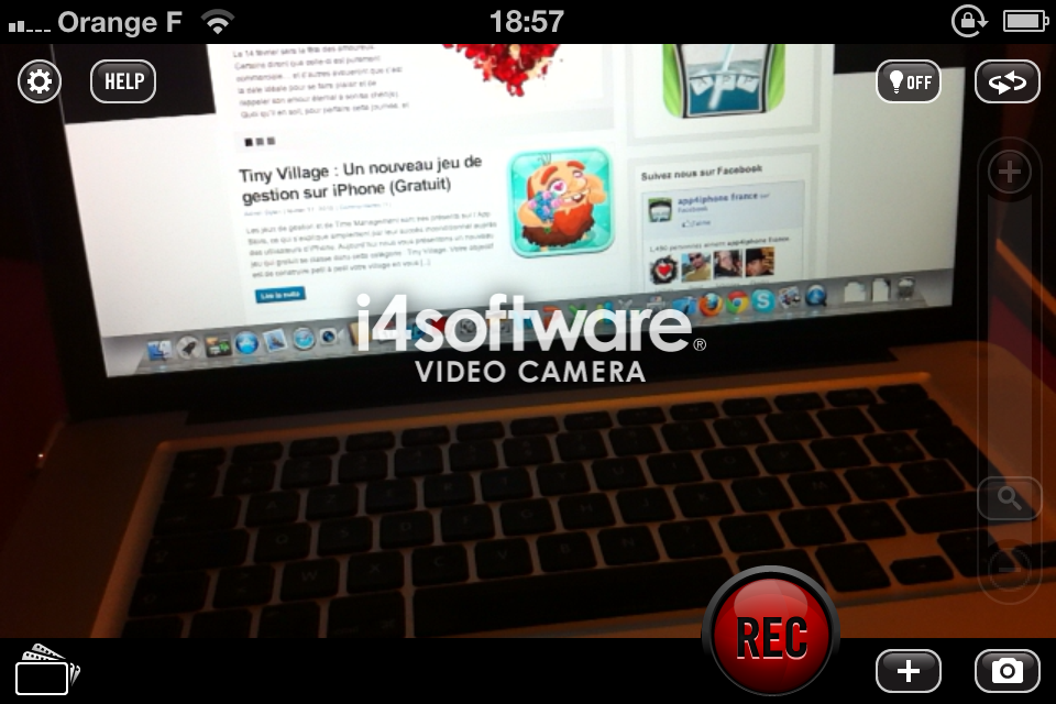 Au premier abord, on remarque la désarmante simplicité de l’interface: un bouton « réglages », un bouton « aide » vous permettant de visionner un tutoriel vidéo, le contrôle de la lumière et de la caméra frontale, un bouton pour enregistrer… Tout est très clair.