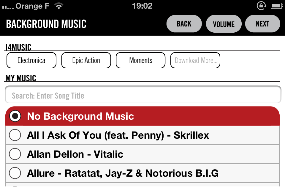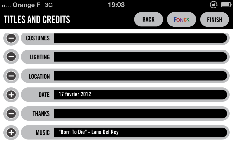 Vous pourrez encore améliorer votre film grâce à quelques « bonus »: premièrement, vous pouvez ajouter de la musique à partir de celle présente sur votre iDevice.