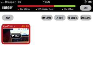 Le bouton « + » de l’écran principal vous permet d’ajouter une vidéo déjà présente dans votre librairie, mais vous pouvez également prendre une vidéo directement depuis l’application.
