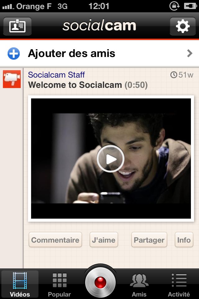 A l’heure des réseaux sociaux, il devient presque impossible de trouver une app qui ne vous oblige pas (ou vous encourage fortement) à vous connecter à votre compte Facebook ou Twitter. Social Cam va encore plus loin puisque son concept même repose sur l’apogée de ces réseaux: vous créez des vidéos dans l’optique de les partager avec vos relations, le tout simplifié par une application spécialement dédiée.
