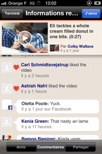 En sélectionnant une vidéo, vous obtenez plus de détails sur celle-ci, ainsi que la possibilité de voir qui a commenté ou aimé la vidéo en question. Vous pourrez aussi partager cette vidéo sur vos réseaux sociaux si elle vous a plu.