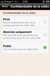 Une fois votre vidéo terminée, vous pouvez non seulement choisir un titre, mais aussi (et surtout) choisir son degré de confidentialité.