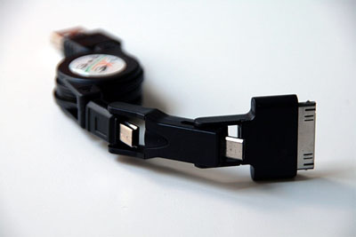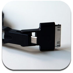 En voilà un produit original ! Si vous utilisez de nombreux appareils mobiles (en plus de votre cher iPhone/iPad) ils n’ont malheureusement pas le même connecteur dock. Avec ce câble vous pourrez recharger/connecter tous vos appareils puisqu’il est doté d’un connecteur dock, d’un connecteur micro-USB et d’un autre mini-USB. Vous pourrez donc recharger/connecter tous les appareils actuellement disponibles sur le marché. De plus, il est muni d’un enrouleur ce qui le rend très compact lorsqu’il n’est pas utilisé.