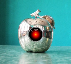 La pomme est plutôt assez représentative de mon idée. Une sorte de droide-pomme ! C’est plutôt pas mal.