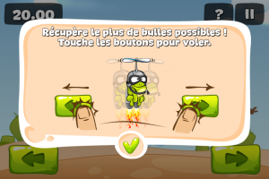 Le quatrième jeu se nomme « Fais voler la grenouille »: le but est ici de récupérer le plus de bulles possibles en volant à l’aide de deux boutons vous permettant de vous déplacer à droite ou à gauche. Encore une fois, cela paraît accessible à un enfant de 5 ans (et cela l’est sûrement), mais obtenir un bon score demande tout de même une bonne concentration.