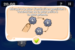 Le cinquième jeu vient corser vos méninges puisque vous devez détruire des astéroïdes, mais pour cela vous devrez les toucher en suivant l’ordre des nombres indiqué.