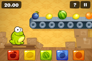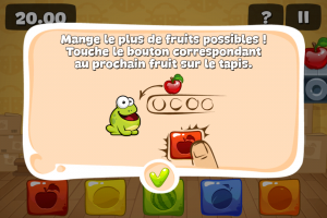 Enfin, pour terminer, je vous présenterai le sixième jeu qui s’appelle « Nourris la grenouille »: vous devez offrir à cette dernière le plus de fruits possibles en appuyant sur le bouton correspondant.